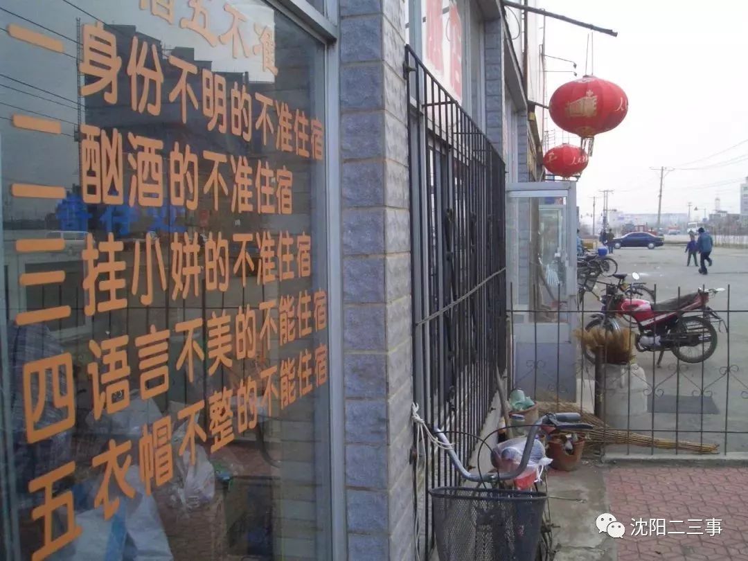 沈阳街头某宾馆贴出的住宿门槛,其中有“衣帽不整的不能住宿”。图/冯翔