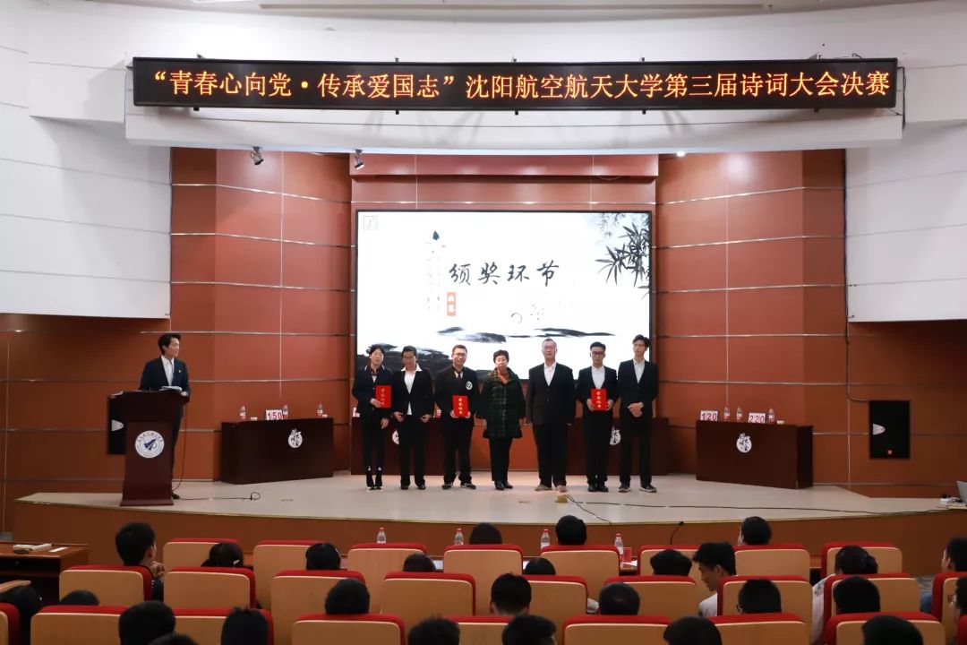 为了传承和弘扬中华优秀传统文化、推进校园文化建设和学风建设、带动沈航学子以积极向上的精神面貌向祖国成立 70 周年献礼。10月25日,由沈阳航空航天大学马克思主义学院、共青团沈阳航空航天大学委员会主办、沈航校团委学生总会承办的“青春心向党?传承爱国志”第三届诗词大会总决赛在我校图书馆国内报告厅拉开帷幕。