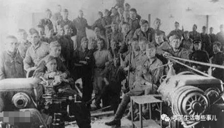 苏军士兵在中国东北准备拆卸的工厂车间合影