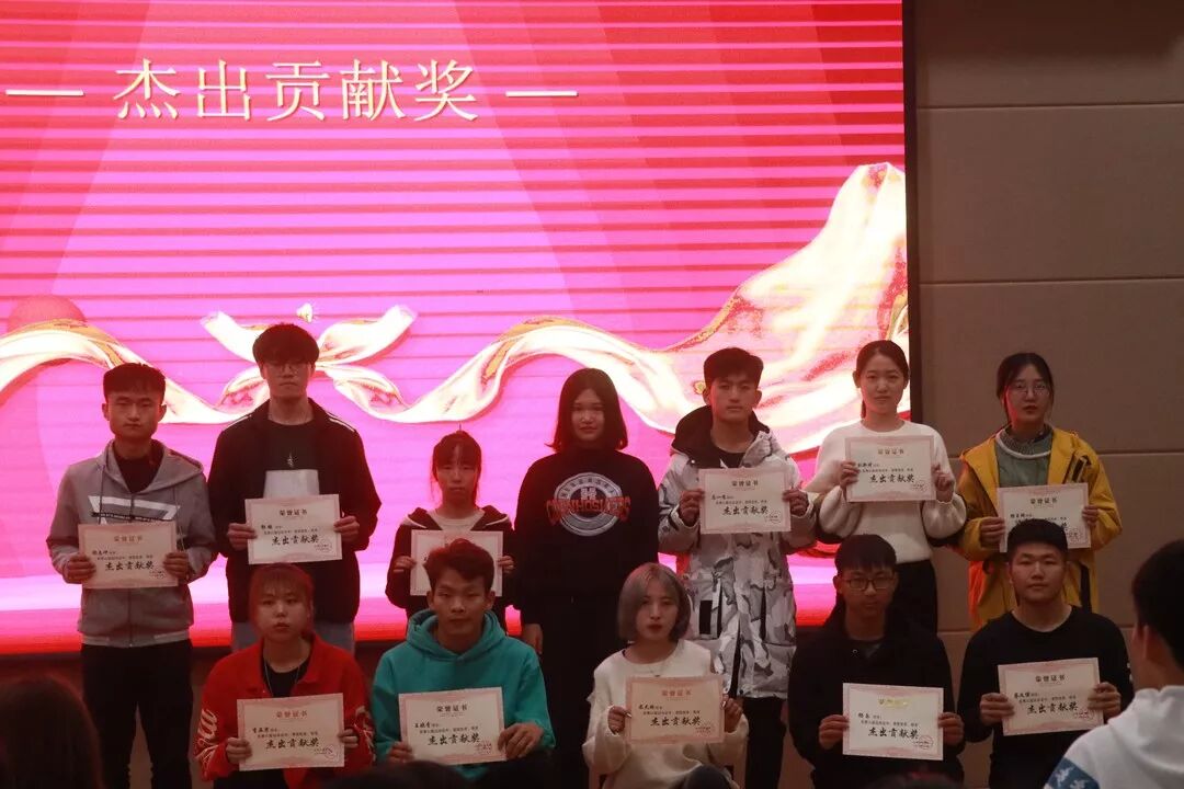 接着颁发的是杰出贡献奖,获奖同学有:嵇志冲、郭鹏、王佩瑶、马一鸣、刘新琦、杨玉珊、李亚男、王晓青、杨乐、蔡文博、米天娇,由纪委主任于晓君为他们颁奖。