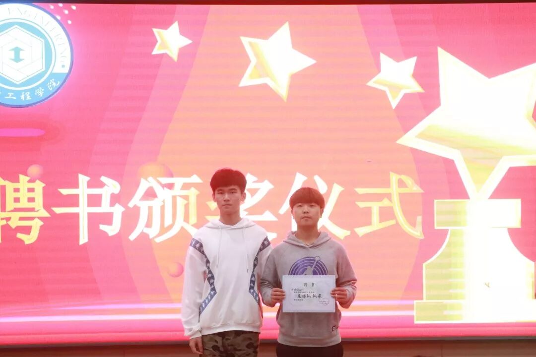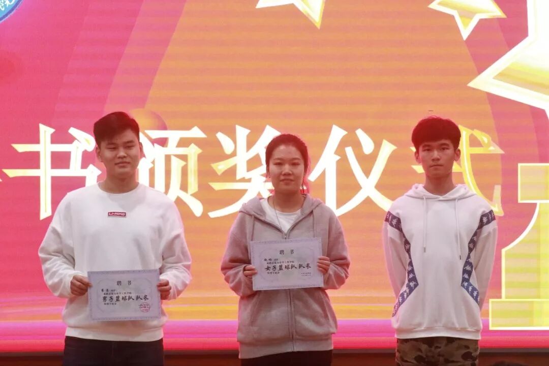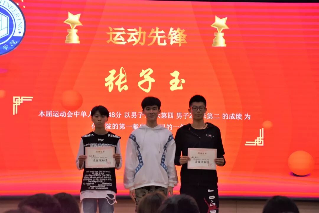 然后颁发的是十佳运动员奖,获奖同学有:张雅芳、陈梁、王宇飞、樊博言、吴昊、李立优、许划耿、孟月、孙臣、韩喆,由学生会主席司江宁为他们颁奖。
