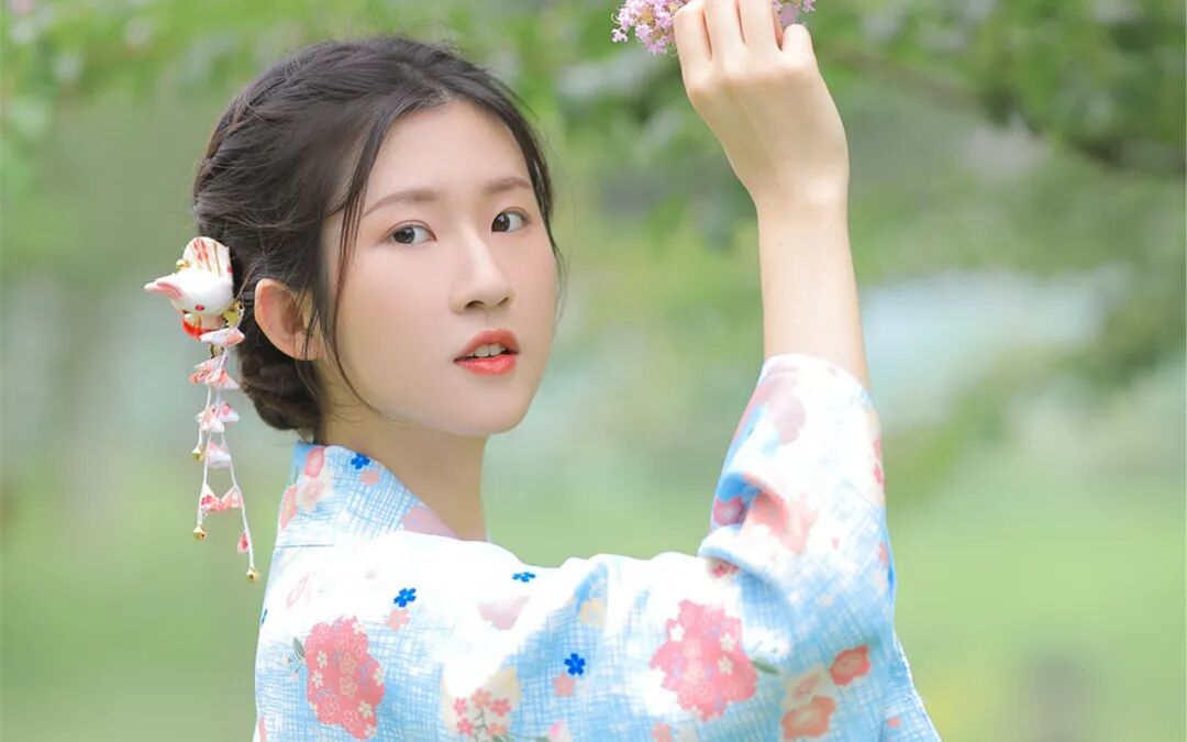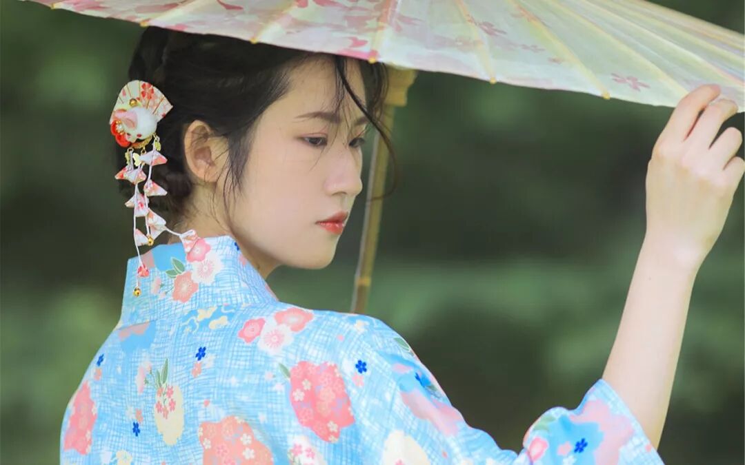 户外清爽和服美女图片桌面壁纸
