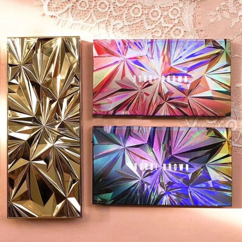 今年Bobbi Brown圣诞限定的外包装比去年还要抢眼,产品外包装以镭射光加万花筒作为设计,非常吸睛,推出限定高光、口红,和宝石眼影盘。