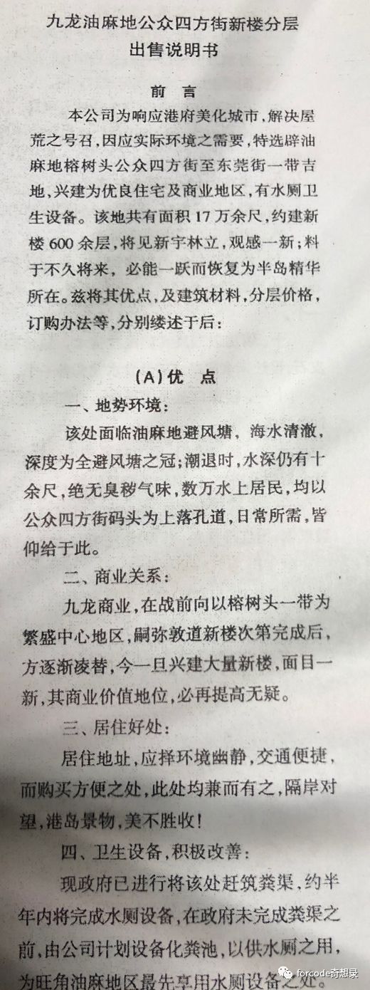 五十年代时霍英东首创的第一份售楼说明书,人们喜欢的房子一直都没变。这广告虽然没有图片、印刷质量很差,但是很成功的文案……