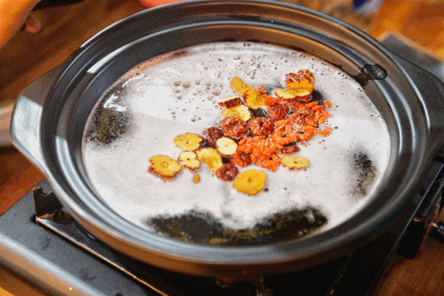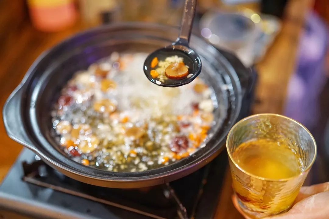 里面加了枸杞、红枣、米酒、蜂蜜等等
