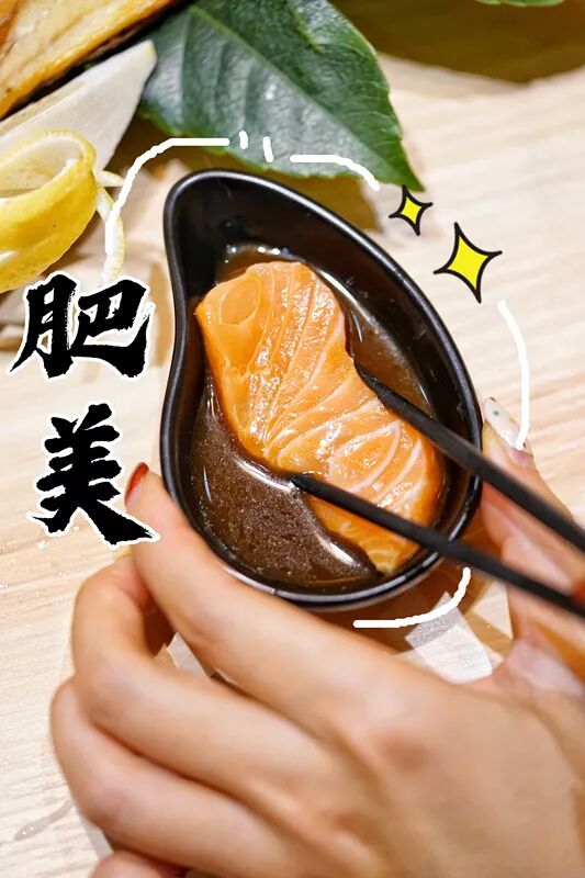 肉质丰腴绵密的三文鱼入口顺滑软糯,蘸上特别的日式酱油,非常地道新鲜,一口下去,肥美在舌尖荡漾,带着淡淡的鲜甜,回味里尽是鲜香,给你带来极致的口感!
