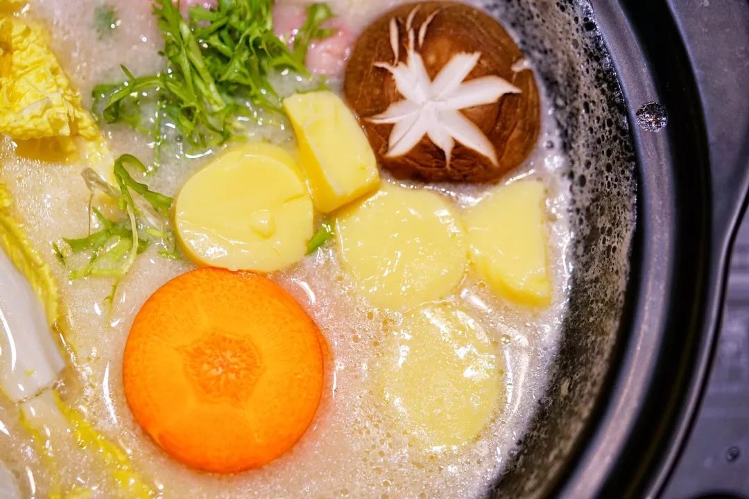 娃娃菜、香菇、玉子豆腐、金针菇通通下锅!
