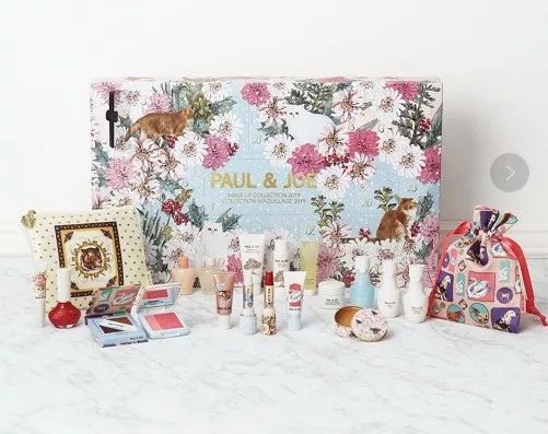 一向以可爱猫咪卖萌的PAUL&JOE,今年也推出了“圣诞限量惊喜礼盒”,包装是可爱的手绘猫咪图案,里面包含:招牌猫咪口红、妆前乳、腮红、眼影、护手霜和造型卡包等,种类是真的多!