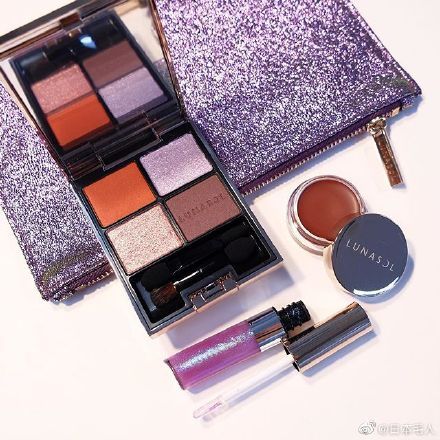 LUNASOL今年的圣诞限定系列以「DRAMATIC DARK」为主题,?展现出了它家独有的配色,给人一种明亮清爽的感觉。彩妆套组:眼影盘融合哑光橙色+提亮色紫色和粉红色,唇颊两用膏则是血腥色的砖红,配上闪闪的唇彩,美爆了!