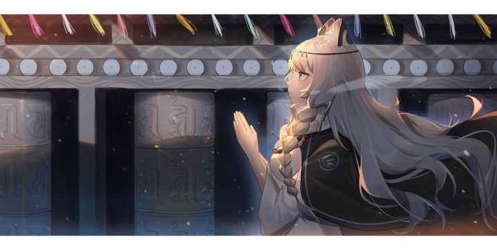标签:明日方舟初雪宽图/电脑壁纸半身图背景描写侧方视角动物特征银发/灰发长发民族服饰奇幻服饰披风/披肩清新福利
