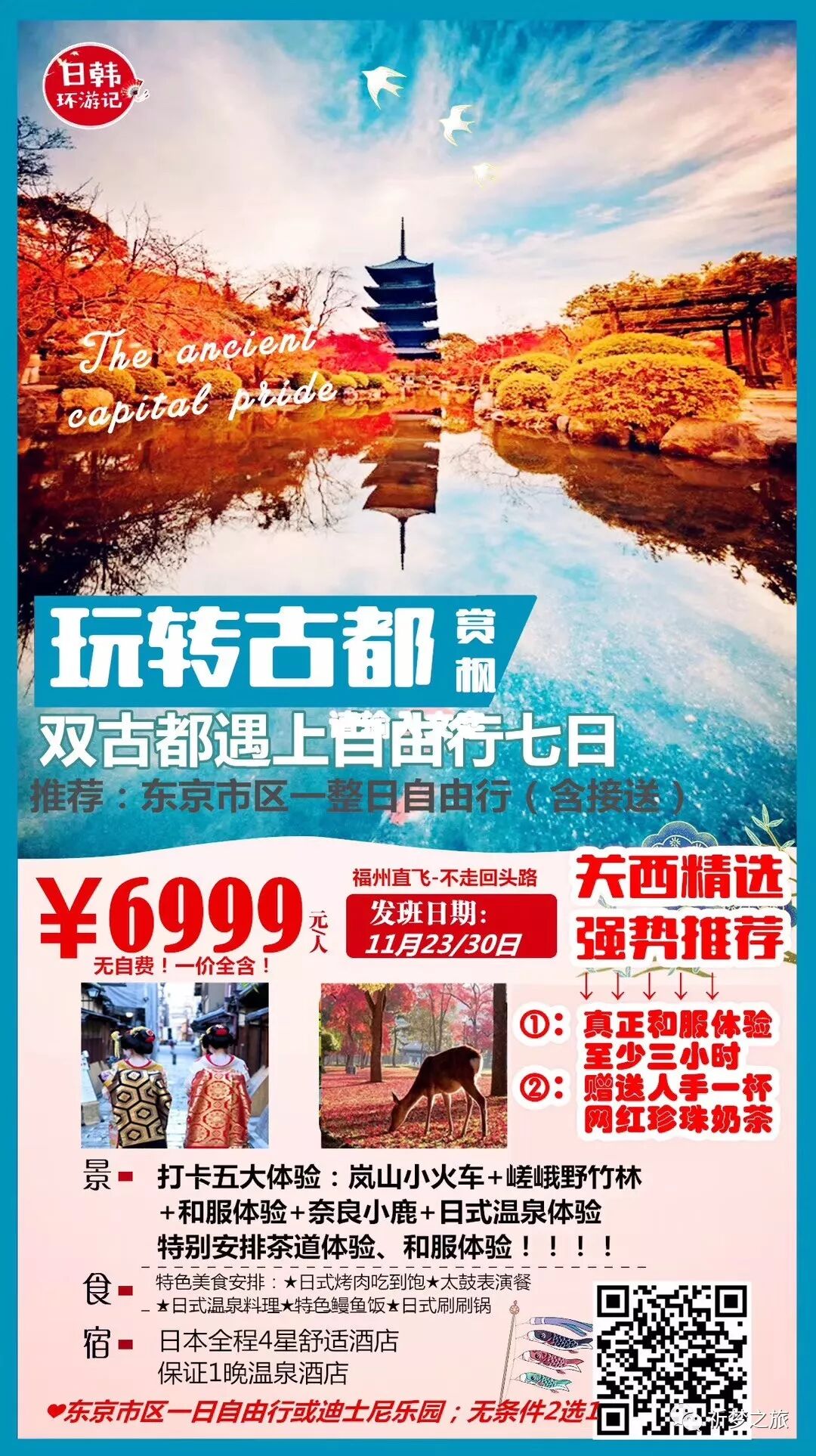 6999元/人11月23/30日日韩环游记•玩转古都半自由7日游
