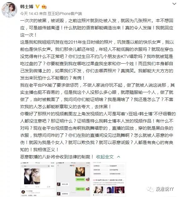 韩士博和语音骡子吧,虽然都是快手直播,但也是风马牛不相及的俩人,这次能有交集因为仙洋,最近传闻仙洋因为强Q被抓了,逆徒语音骡子把这事说的头头是道,然后韩士博立场仙洋,给他一顿小语言,骡子一生气,微博疯狂撕逼韩士博,曝出以前旧照。