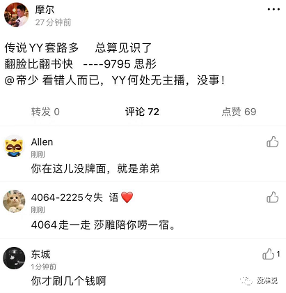 摩尔来YY支持孩宝和心悦主播思彤,但今天突然改名挂思彤玩套路,翻脸比翻书快,还@思彤家VP,说看错人而已,YY何处无主播,没事!