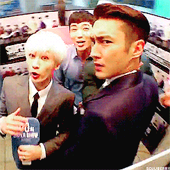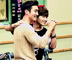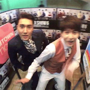在舞台上,始源总是要跟厉旭HighFive,厉旭生气了对始源说:“不要再highfive了!”