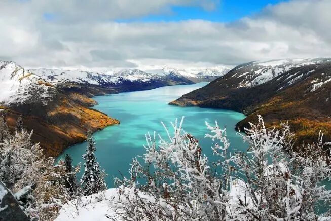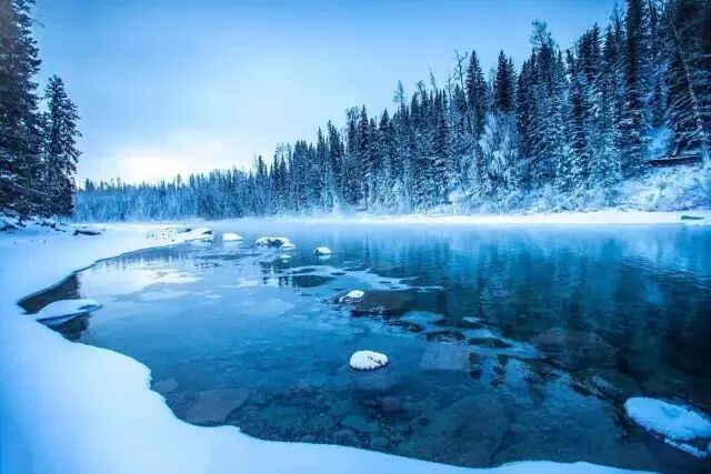 这里的冬天,皑皑的白雪静静地铺满新疆北部喀纳斯的山间河流,圣洁的喀纳斯随着气温的变化,伴着纷飞的雪花,不时升腾起阵阵云雾,顺着山坡、河谷四处自由飘荡。古朴的图瓦人木屋散落在皑皑白雪中,马拉着爬犁在雪中掠过,随着云雾的流动,天空与阳光、河流、山野、木屋共同构成人间一幅幅美丽图画。冬日的北疆,没有了往日的喧嚣和烦杂,天地间一片宁静,晶莹剔透的积雪让一座座山坡变得曲线曼妙圆润,阳光下,散发着淡蓝色的莹光,星星点点的跳跃着,在这里,满眼都是中国画的韵味。