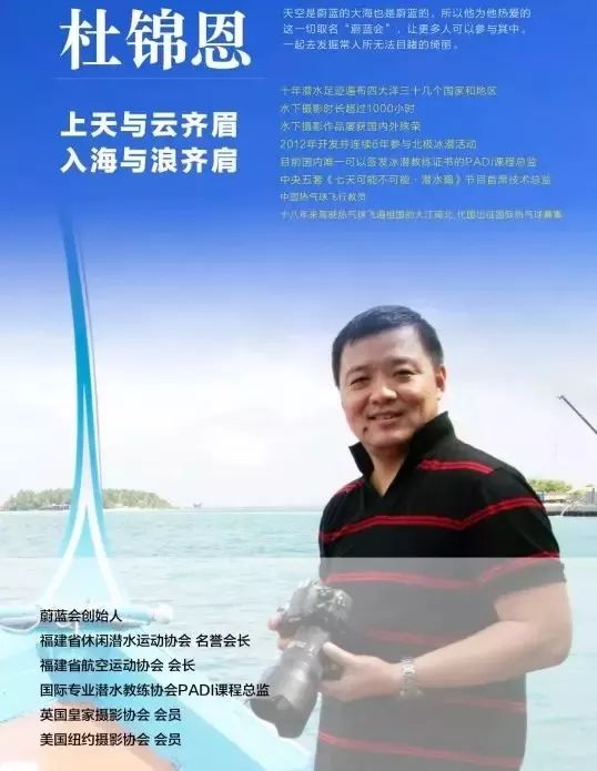 蔚蓝会创始人,PADI课程总监杜锦恩先生,连续七年组织前往北极冰潜,是中国首位白海北极圈内受训可签发冰潜教练证书的冰潜课程总监。自2015年起,以杜锦恩先生为核心的蔚蓝会训练团队,每年都会在国内配合国际化的课程大纲,为冰潜潜水员开展干式潜水服课程、冰潜课程前置训练和模拟,在保障参与者顺利完成冰潜的同时享受整个行程。