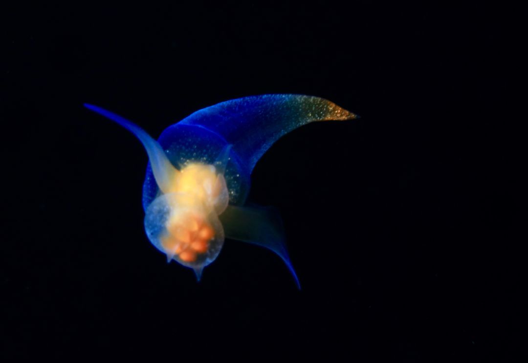 流冰天使也被称作“海天使”,目前只有在南北极地区和日本北海道地区的冰层之下发现它的身影,是十分珍贵的海洋生物。它的美名可能与身上长著一对类似翅膀的器官有关,她通体透明,在水中冉冉飘动,而她透明的身体中央有着红色的消化器官,看起来像一颗火热的红心。它也是传说中的幸运之神,有传说热恋中的情侣们看到她那颗火热的红心,可以为自己带来浪漫的爱情、美满的婚姻。