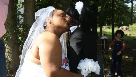 卡德莱克选择在去年9月和凯莉盛大完成婚礼,她穿着白色婚纱,凯莉则是穿上黑色燕尾服,现场还有8名她的丧尸玩偶充当伴娘伴郎,以及4名亲友一起见证,她们的爱情虽然无法获得大众的理解,但她仍义无反顾,「当我对我们的感情愈来愈有自信,我知道我必须嫁给她」。