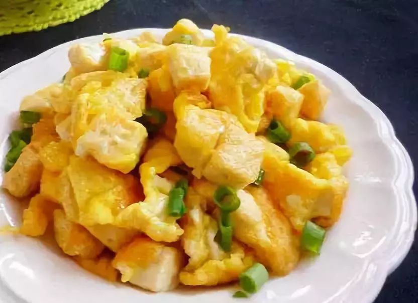 做法:1.豆腐放入蒸锅大火蒸透。(大约十分钟)。2.蒸好的豆腐片去老皮,切成一厘米见方的丁。3.鸡蛋打入碗中,加入食盐。4.加入食盐的鸡蛋打散。加入切好的豆腐丁拌匀。5.锅中放油烧热,倒入拌匀的鸡蛋豆腐。6.中火推炒至鸡蛋熟透。7.撒入一些准备好的香葱末,翻炒均匀即可关火出锅。