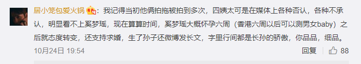 而且之前奚梦瑶多次被拍到怀孕四太梁安琪都各种澄清,愣是一直没承认,时间线走到差不多六周能查出来性别之后,立刻就转变了态度。