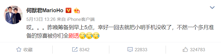 何猷君在微博上说为了给奚梦瑶惊喜,一早就没收了她的手机。