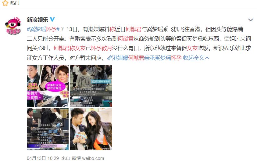 其实早在四月份,何猷君求婚之前,就已经曝出过奚梦瑶疑似怀孕的消息。