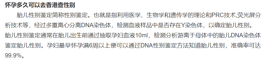 根据网上的资料显示,香港是允许提前鉴定胎儿性别的,只要怀孕满六周以上就可以。