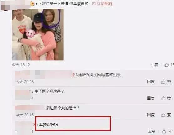 此外,对于何猷君晒出的这两张照片也有网友把关注点放在奚梦瑶身上。刚刚生下儿子的奚梦瑶身体还有些浮肿,脸也有些蜡黄,而且,因怀孕颈纹很严重,对于素颜出镜的她有网友则吐槽完全变了,没认出来。对此,也有网友替奚梦瑶抱不平反驳到:“这明显是家人为了恭喜强行合照,不要对一个刚刚生下孩子的妈妈这么大恶意。”