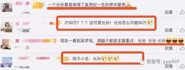 如今看到她生的“长孙”仅出生就花费50万,很多网友调侃:“一个长孙算是保得了奚贵妃一生的荣华富贵,现在满脑子都是重点:长孙长孙长孙”。也有网友打趣道:“才50万?这可是长孙!”