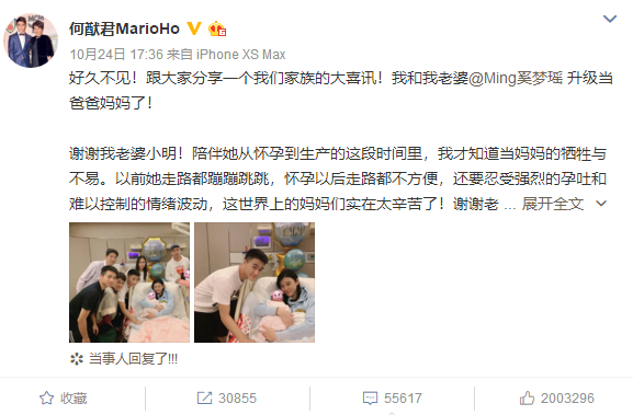 昨日,何猷君在微博发长文表示:小明给他生了个儿子!这是赌王的第一个长孙!