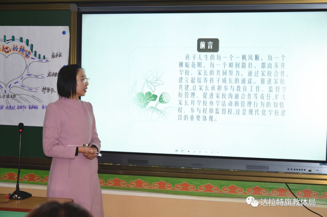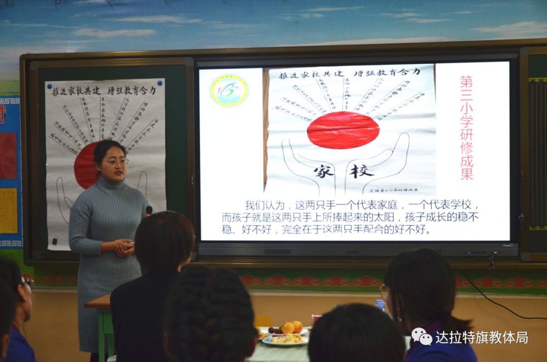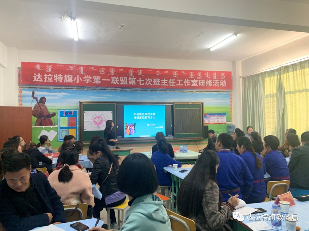 10月25日下午,由达拉特旗教体局德育办主办,达拉特旗蒙古族学校承办的以“如何推进家校共建,增强家校教育合力”为主题的达拉特旗小学第一联盟第七次班主任工作室研修活动如期举行。达拉特旗教体局工会主席刘永清同志、达拉特旗德育办、王爱召镇中心小学、风水梁小学、蒙古族学校、实验小学、第二小学、第三小学、第九小学、第十小学的德育领导和班主任代表们参加了此次研修活动。