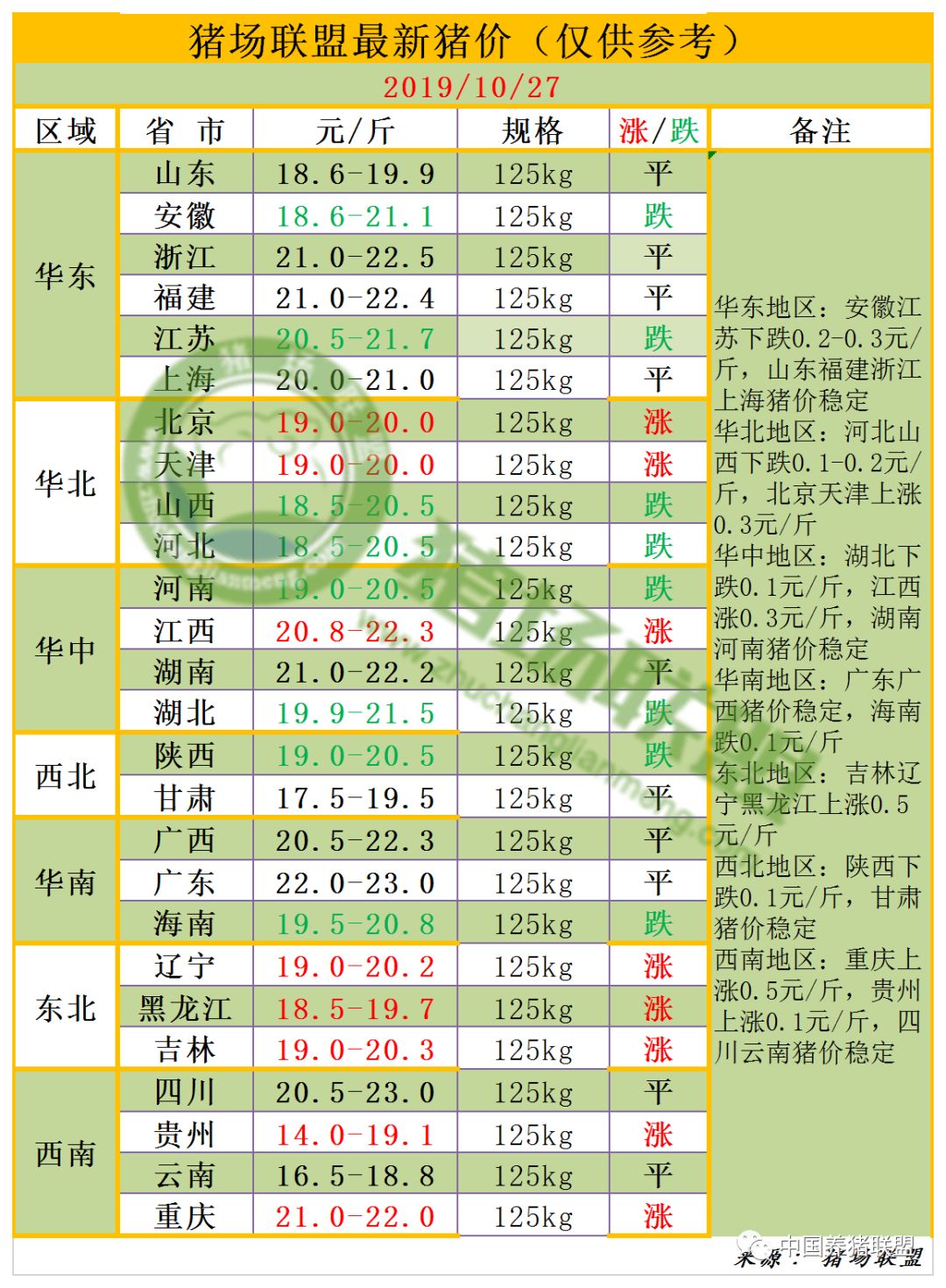 10月27日全国生猪价格,从整体来看猪价下跌现象明显有所减少,黑龙江、吉林、辽宁地区猪价出现一定幅度的反弹现象,主要是受到养殖户惜售影响;北方地区猪价的止跌反弹对于全国各地猪价有着积极作用,目前东北地区作为南方不少省生猪供应地,其猪价对全国很多地区有着明显的影响作用。