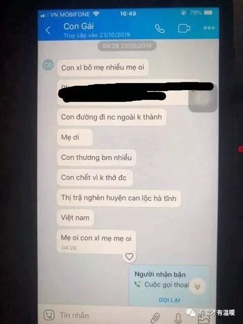 据称是范氏发给其家人的手机讯息。图源 vietnamnews
