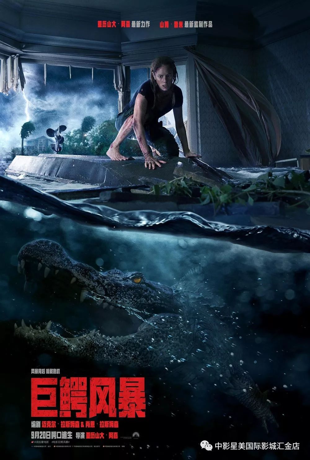 剧情简介:一场猛烈的飓风正在逼近美国佛罗里达州的一座小镇。女主角海莉(卡雅·斯考达里奥饰)在游泳训练中接到了姐姐的电话,他们的父亲(巴里·佩珀饰)已经失联多时,她非常担心父亲的安危。海莉不顾撤离命令独自前往父亲家中,并最终在地下室里找到了身受重伤的父亲。洪水暴涨眼看就要将地下室淹没,海莉很快就意识到最可怕的并不是洪水,而是隐藏在水中的致命猛禽--鳄鱼。