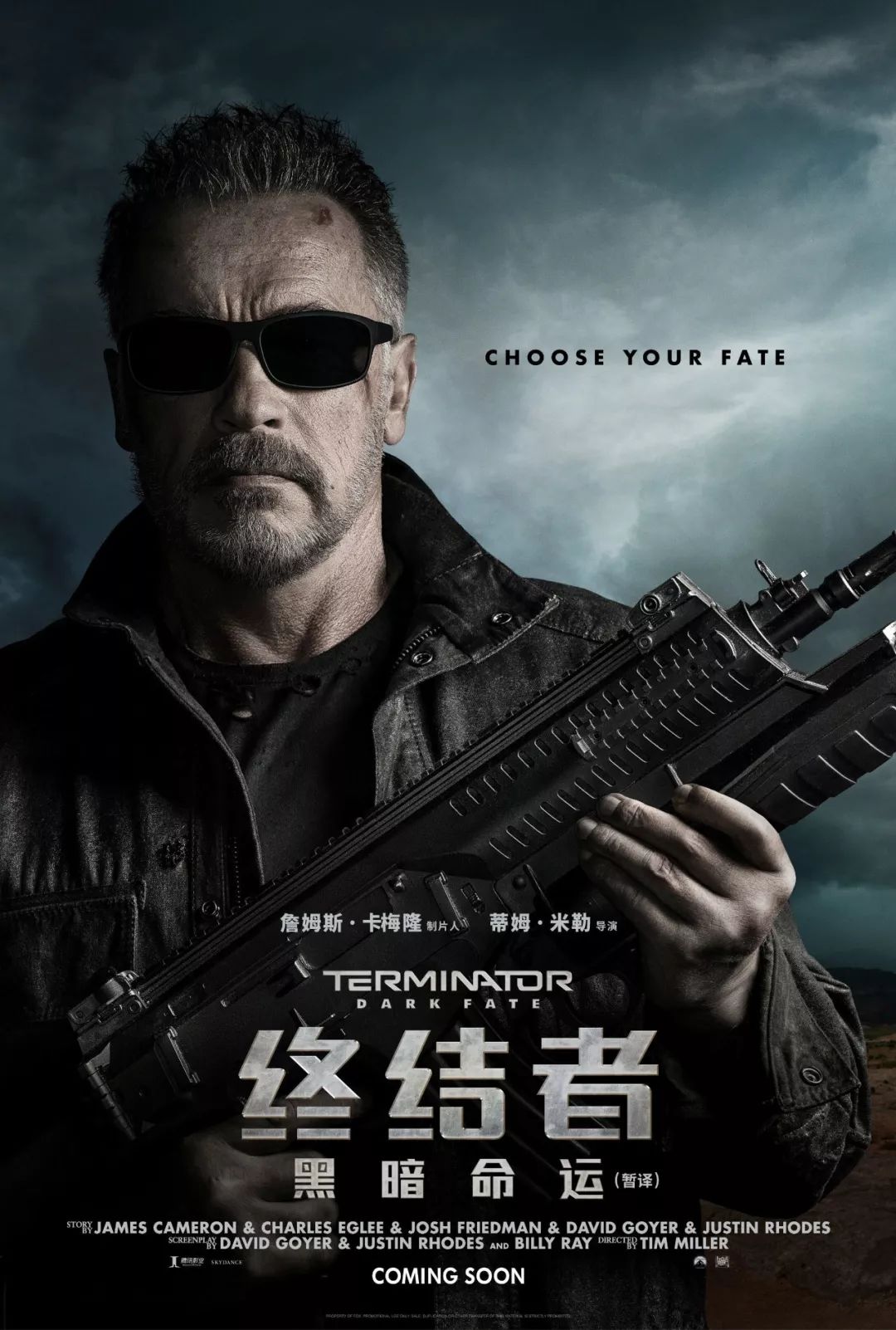 科幻动作电影《终结者:黑暗命运》由腾讯影业、Skydance Media、派拉蒙影业、二十世纪福斯公司出品。中国电影集团公司进口,中国电影股份有限公司、华夏电影发行有限责任公司联合发行,中国电影股份有限公司译制。詹姆斯·卡梅隆担任制片人及编剧,蒂姆·米勒执导。琳达·汉密尔顿、阿诺·施瓦辛格经典回归,麦肯兹·戴维斯、娜塔利娅·雷耶斯、加布里埃尔·鲁纳主演,影片将于2019年11月1日全国公映。