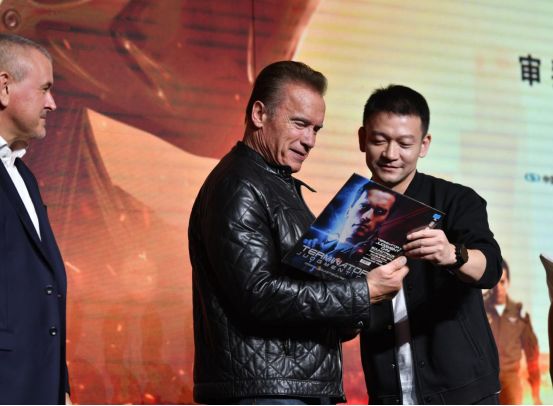 《终结者》系列对于世界科幻动作影史来说意义非凡,自1984年问世以来,很多中国电影都曾致敬和效仿过这一经典IP,阿诺·施瓦辛格也作为时代图腾,影响着一代又一代的中国电影人。凭借电影《流浪地球》创造中国科幻电影票房奇迹的导演郭帆就来到现场,郭帆透露自己一直是《终结者》和施瓦辛格的头号粉丝,正是年轻时看到了《终结者2:审判日》,才在心中埋下了科幻的种子,才有了20多年后的《流浪地球》。郭帆导演更是现场追星,向施瓦辛格送上了自己精心准备的《终结者2:审判日》原声黑胶唱片做礼物。导演蒂姆·米勒还打趣郭帆“是不是想要导演下一部《终结者》电影”,郭帆则回应:“那一定会像这面中国大鼓一样,充满非常多中国的传统特色”。