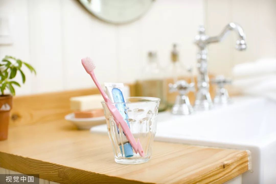 洗手池旁边一般都会有马桶或者垃圾桶之类的,而马桶内的瞬间气旋最高可以将病菌或微生物带到6米高的空中,并悬浮在空气中长达几小时,进而落在墙壁和牙刷上。所以,牙刷最好放入抽屉或柜子里。