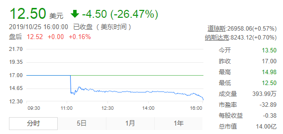 美国股市开盘后,网易有道股价随即暴跌,25日收盘跌幅26.47%报12.5美元,按收盘价计算,市值达14亿美元。