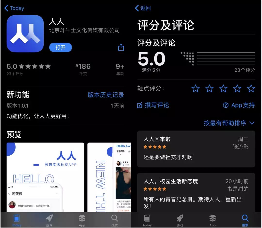 本周五(10月25日),刺猬公社(ID:ciweigongshe)发布了新版“人人”App在苹果App Store 上线的消息,引起了许多人人老用户的热议。(此处有链接)