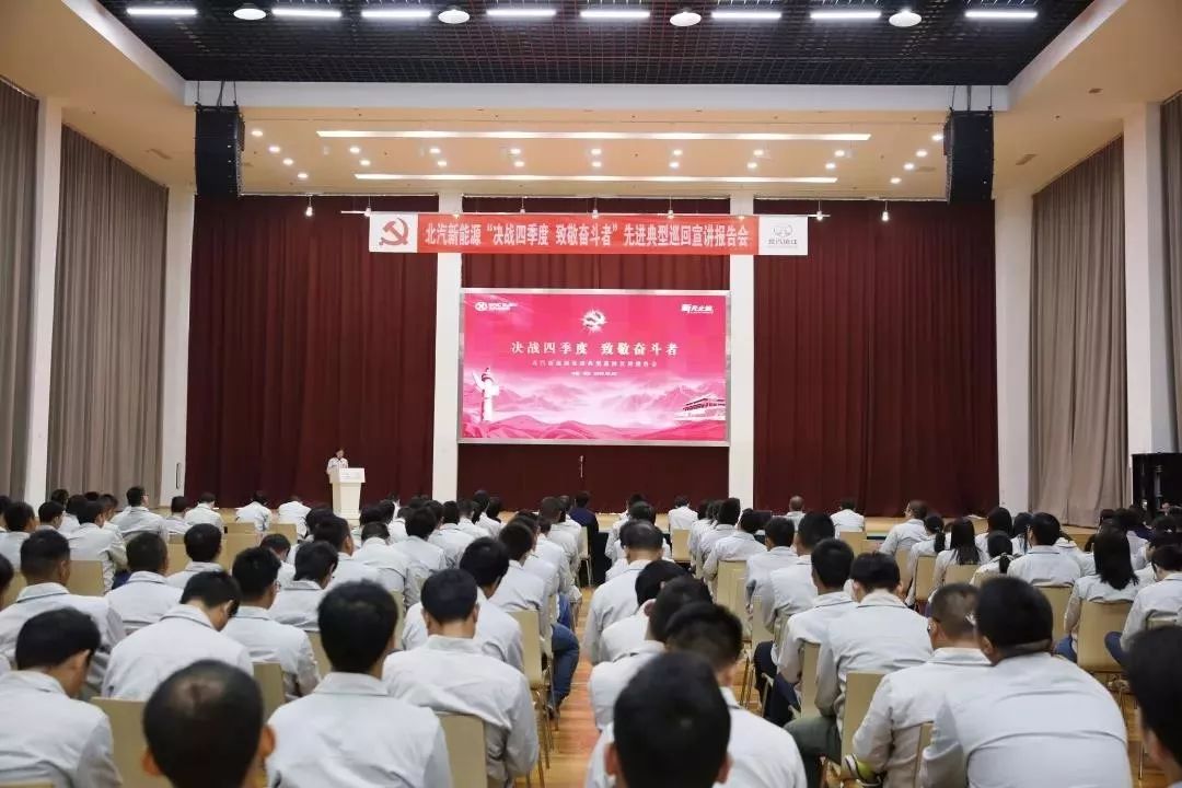 10月23日,北汽新能源“决战四季度 致敬奋斗者”先进典型巡回宣讲报告会走进北汽镇江公司,与公司200余名干部职工现场聆听了先进典型事迹的宣讲。
