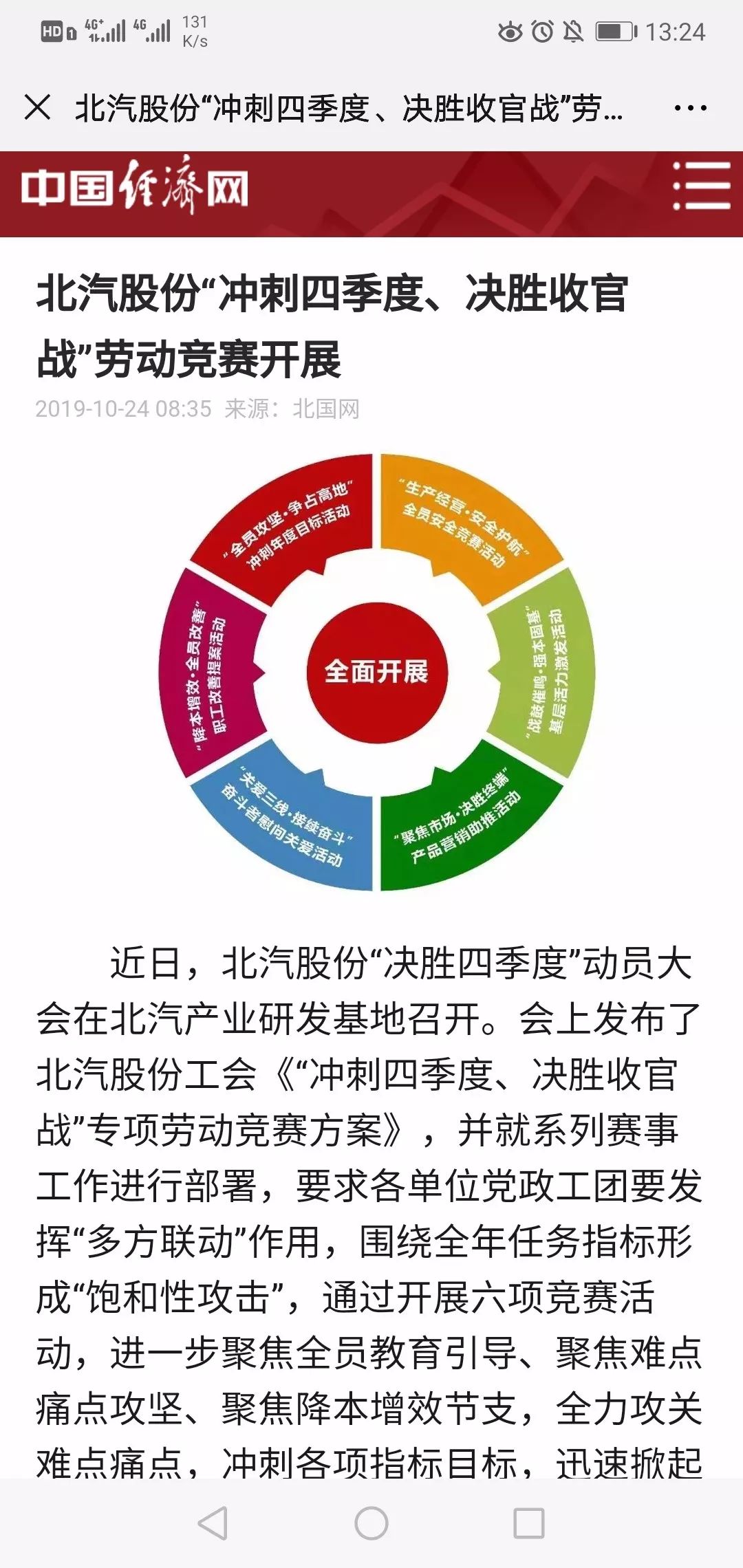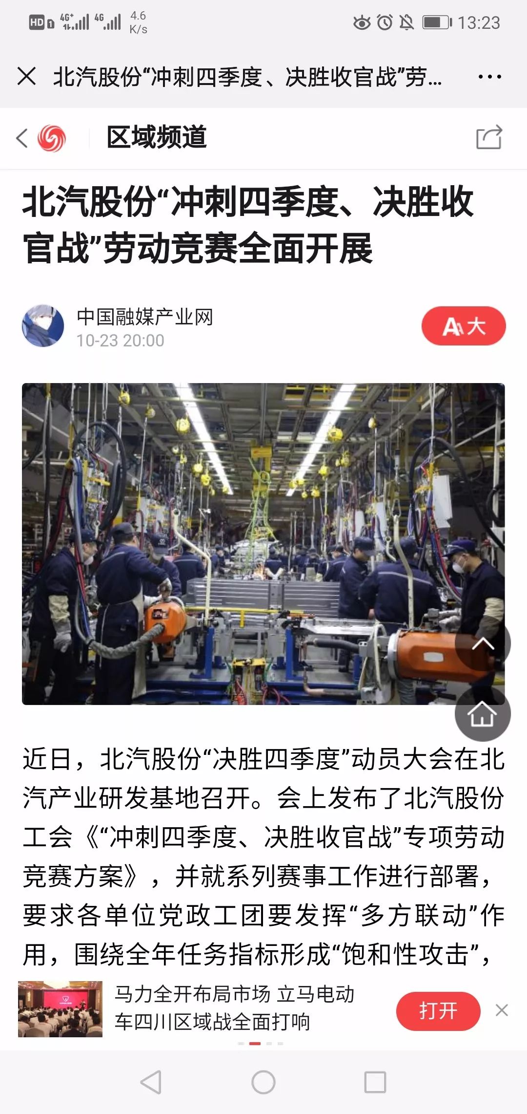 自北汽股份工会“冲刺四季度、决胜收官战”专项劳动竞赛开展以来,股份系统各所属单位紧密围绕全年生产经营工作总体目标,强化发展意识,创新竞赛开展方式,通过“工厂直销”、“产品推介会”、产品测评、应急演练以及基层班组“小细胞”建设等多种活动形式,激发职工的劳动热情、创新意识和创造活力,得到中国经济网、凤凰新闻、网易新闻、中国企业网等多家媒体的广泛关注与好评。