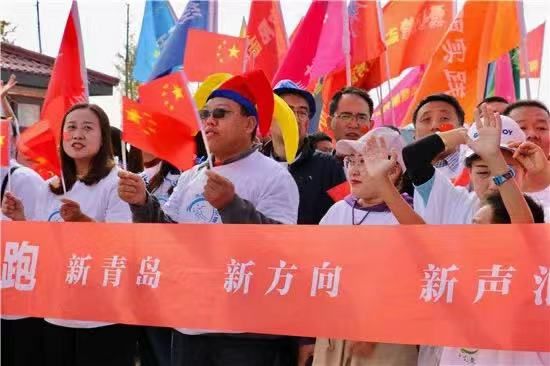 早上8时许,参赛者们就已陆续抵达会场,其中不乏特地从青岛市区自驾、坐大巴赶来参加活动的市民。在热闹的队伍中既有爱好跑步的青年,也有身体硬朗的白发老人,还有被爸爸妈妈用小车推着的稚嫩萌娃……俨然是一场全民参与的跑步“嘉年华”。