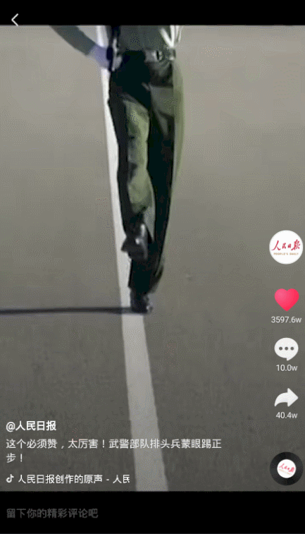 2019年点赞最高的抖音视频,是“人民日报”在9月26日发布的“这个必须赞,太厉害!武警部队排头兵蒙眼踢正步!”,收获3484.8w赞。