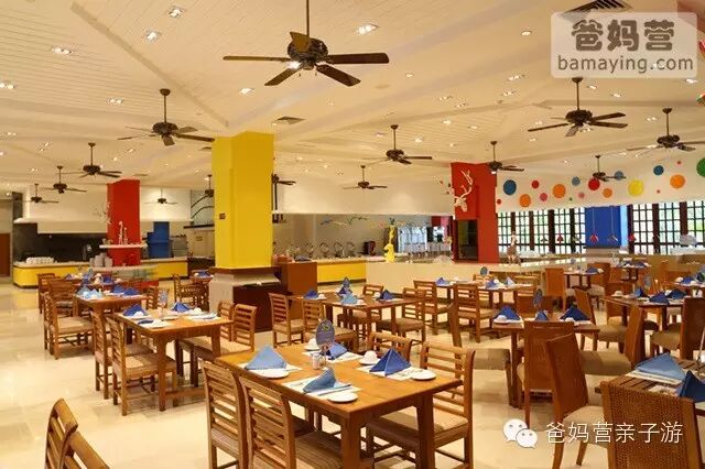三亚天域拥有十多个餐厅,其中适合孩子去的是【采风阁】。餐厅色彩鲜艳,还有很多有趣的玩具,所有餐厅都配备了宝宝椅和儿童餐具,不少对吃饭毫无兴趣的小朋友快乐地跑进餐厅,爱上吃饭,乐不知返!