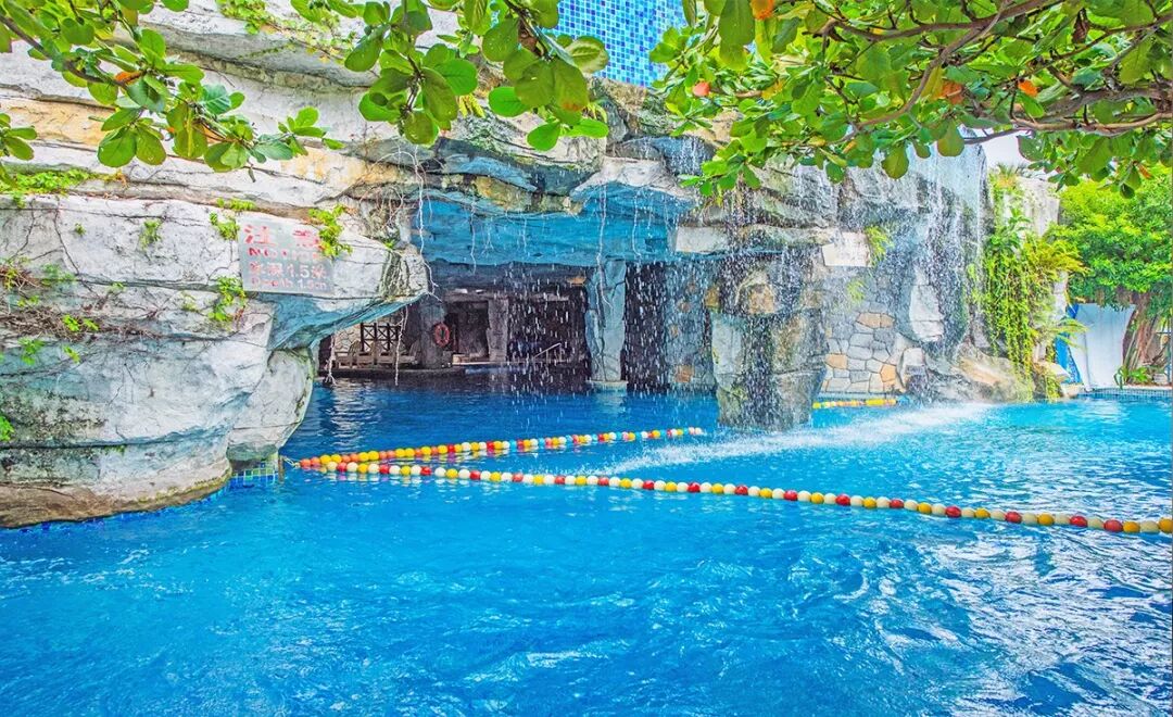 温水游泳池位于二区双层泳池的假山下,半室内但是明亮,怕晒的爸妈和小朋友们喜欢在温水泳池中戏水,到了冬天,如果怕冷不敢下海或者露天泳池里游泳,温水泳池绝对是最佳的选择。