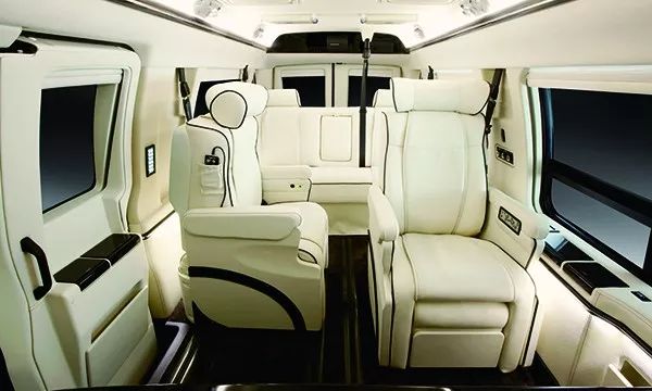 奔驰V级全系标配7座,可以选装6座,配置比较豪华,如带冰箱的中央扶手、柏林之声音响等,诸如座椅电动调节、电动记忆、电动加热、通风功能等一应俱全,而且第二排还配备了皮革材质的小桌板。
