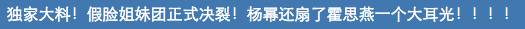 网曝杨幂就因为霍思燕抢角扇了她一巴掌而正式决裂了。不过杨幂方否认了抢角一事,说是自己档期冲突只能忍痛放弃了。