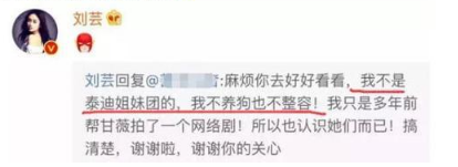 编外人员刘芸这时还不忘来蹭一波热度,不承认自己是泰迪姐妹团的,说自己不养狗不整容。
