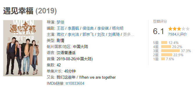 该剧以质朴的情感感染观众,以润物细无声的笔力传递正能量价值观,党媒官媒纷纷点赞温暖明亮的主题基调和拒绝贩卖焦虑的可贵态度,印证了剧集的超高口碑与受认可程度;同时,剧集收视一路领航,力压同期播出剧位居省级卫视第一,在爱奇艺、腾讯播放的热度持续高涨,反映了剧集的可看性与共鸣感,深受大众肯定;微博热搜多次上榜、抖音热点盘踞首位,则见证了剧集“幸福力”与受欢迎程度。从“温情现实主义”这一兼具温度与态度的精神内涵出发,《遇见幸福》的播出为庆祝中华人民共和国成立70周年首批献礼剧集,添上了别具一格且浓墨重彩的一笔。