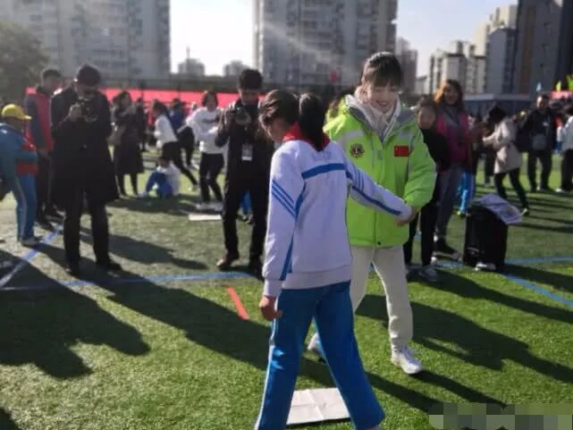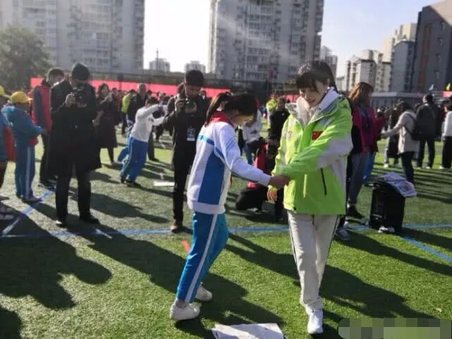 李小璐做公益与学生牵手玩游戏,打扮朴实人群中仍是美得耀眼